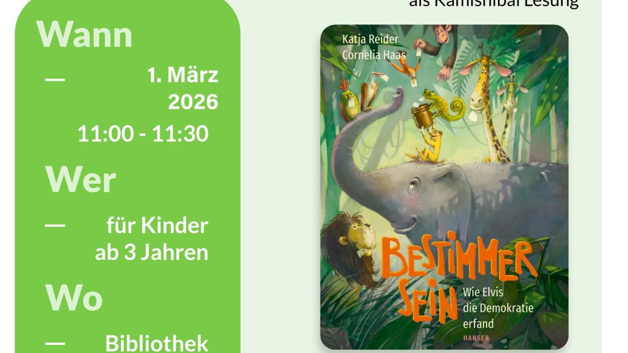 01.03.2026 Vorleseglück im März - Kamishibai Lesung Die Kamishibai-Bühne kommt wieder zum Einsatz: Das Buch "Bestimmer sein" erklärt Kindern wie Demokratie funktioniert.